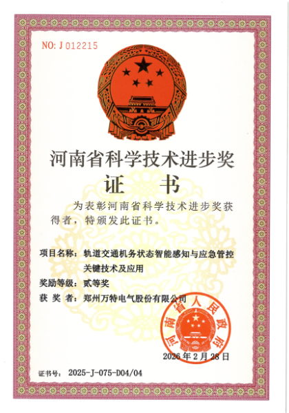 近日,必赢76net线路官网凭借“轨道交通机务状态智能感知与应急管控关键技术及应用”项目,荣获2025年度河南省科学技术进步奖贰等奖,彰显了公司勇于创新的进取精神。