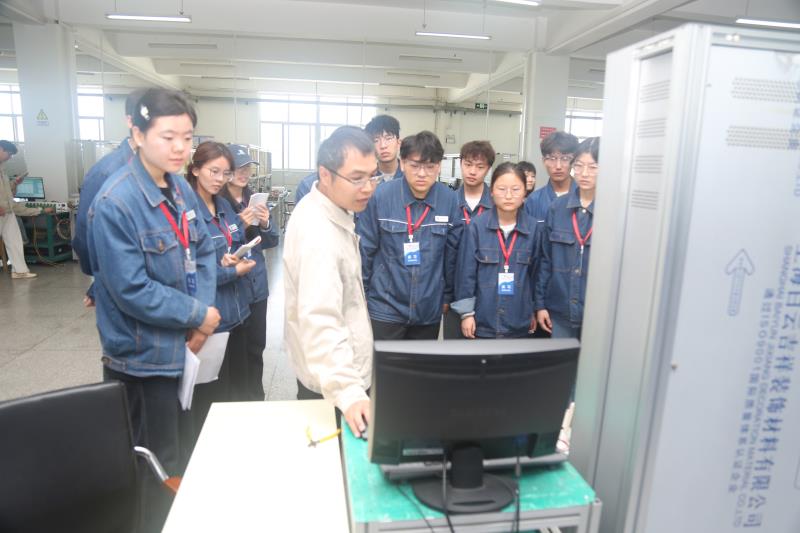 随后,专家组走进生产、研发车间,实地察看学生实训环境。企业导师侯威现场向郑州电专学生讲解实习项目设置、标准操作流程与关键技术要点,展示真实岗位实操场景与规范要求,让专家直观感受“做中学、学中做”的实训模式落地成效。